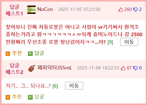 판매시작한 세계최초 가정용 휴머노이드.jpg 페이지 정보 작성자 몰라아잉 댓글 0건 조회 87회 작성일 25-11-09 21:27 목록 본문 . 댓글 0 댓글목록 등록된 댓글이 없습니다.